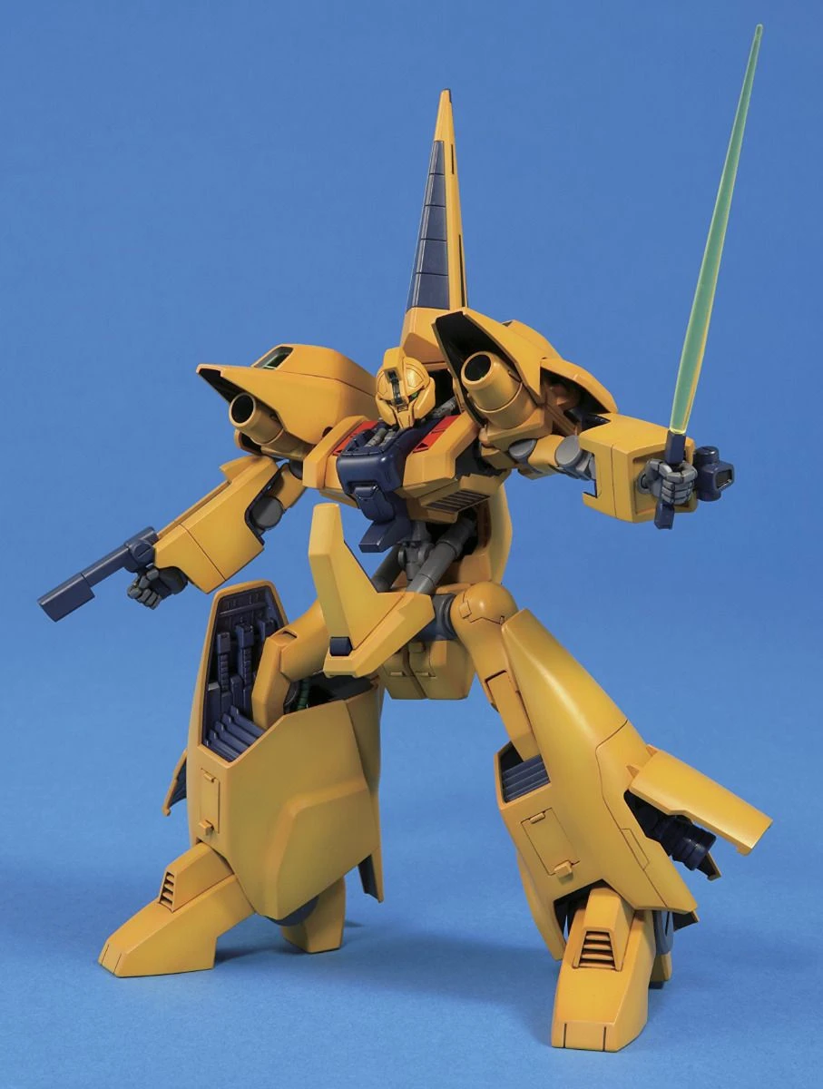 The Methuss is a transforming prototype mobile suit from Zeta Gundam often used as a support unit. Includes 2 underhand beam pistols, beam sabers and ability to transform into wave rider mode. Is compatible with Hyaku-Shiki Mega Launcher set to replicate the sequences where it is used as a power source.