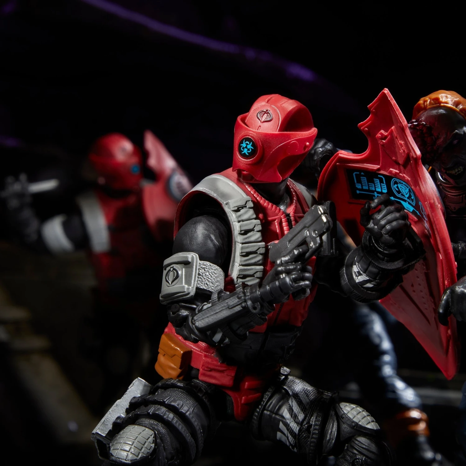 G.I. Joe is a highly skilled special operations force of men and women from around the globe. tasked with defending the world from Cobra, a ruthless criminal organization bent on total domination. Prepared to seek out Cobra in any environment on the planet…wherever there’s trouble, G.I. Joe is there. New to the G.I. Joe Classified Series line, Crimson Alley Viper comes ready for adventure, with multiple points of articulation for high poseability. This Crimson Alley Viper figure contains 10 character-inspired accessories including a visor mask, riot shield, grappling hook, backpack, 2 knives, and 2 weapon accessories; plus a footlocker to stow all his gear! To consolidate their power within Cobra, the Crimson Strike Team (Tomax, Xamot, and the Baroness) have reassigned their most loyal and ruthlessly brutal troops to the Crimson Alley Viper squadrons. Crimson Alley Vipers were recently sent to quell a strange outbreak among the Mole Rat troopers excavating Dark Energon Mines.